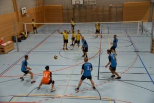 Vergangenen Samstag spielten die Herren des Traktor 5 gegen die Herren 4 von Therwil im dritten Spiel der Meisterschaft. Nach anfänglichen Schwierigkeiten unterlagen die Herren 5 Therwil im ersten Satz mit 21:25. Im zweiten Satz mangelte es der Mannschaft etwas an der Konzentration was am Resultat von 8:25 deutlich wurde. Doch aufgeben war keine Option. Die Traktoren kämpften sich zurück ins Spiel und konnten sich in einem spannenden 3. Satz und der Unterstützung des Publikums mit 25:23 durchsetzen und das Resultat auf ein 2-1 verkürzen. Leider hielt die Euphorie nicht lange und der vierte und entscheidende Satz ging wieder an das Team von Therwil – 6:25. Die Leidenschaft am Volleyball blieb aber trotz des Matchverlustes erhalten – denn die Traktoren blieben nach dem Match noch länger um sich bereits für das nächste Match vorzubereiten. So wollen wir das sehen!