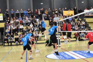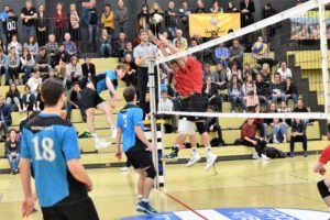 Der zweite Satz verlief dann ähnlich wie der erste. Voléro Zürich ging gleich zu Beginn in Führung, konnte den Vorsprung aber nicht halten und musste sich am Ende von den Traktoren überholen lassen. 25:22 zeigte das Score Board am Ende des Satzes. Somit war klar, wenn Traktor den nächsten Satz gewinnen würde, stünde man vorzeitig als NLB-Meister fest! Doch dass die Zürcher den Baslern nur zu gerne die Suppe versalzen würden, zeigte sich im dritten Satz. Mit 14:11 lag Voléro vorne, doch durch eine rote Karte schenkten sie den Baslern einen Punkt und mussten wenig später den Ausgleich hinnehmen. Die Zürcher liessen aber auch in der Folge nicht locker und zogen wieder bis auf 20:16 davon. Traktor Basel – allen voran Diagonalangreifer Dario Schmid – waren aber überhaupt nicht gewillt, einen vierten Satz zu spielen: Schmid punktete am Ende gleich mehrmals spektakulär und führte die Basler auf die Siegesstrasse zurück. Am Ende war es ein Angriff von Traktor Basels Aussenangreifer Nathan Broch, welcher den 3:0 Sieg und den Titel für Traktor besiegelte. Danach gab es für die Mannschaft und Staff kein Halten mehr und Traktor Basel liess sich vom tollen Publikum zu recht feiern.